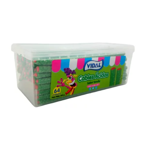 Cada Cable Ácido es una aventura de sabores sorprendentes que despiertan tus sentidos. La tarrina de 364 gramos con 64 unidades te garantiza una generosa porción de diversión y sabor, perfecta para compartir con amigos y familiares.